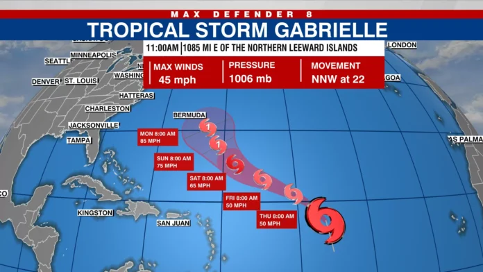 Tropical Storm Gabrielle forms in the Atlantic