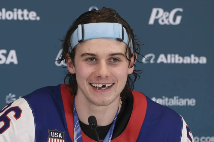 Jack Hughes, the 18-year-old American ice hockey player, has made headlines once again. This time, it’s not just for his impressive skills on the ice, but also for his alleged Canadian pop star girlfriend. On Sunday, Hughes led his team to victory against Canada in the Olympic gold medal game, and it seems like he might have to apologize to his girlfriend for beating her home country.