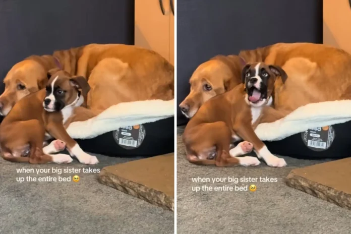The owner of the two dogs, who goes by the username @doglover123, shared a photo of her two dogs on social media with a caption that read, “The big one has her own bigger bed and still chooses the smaller one.” The photo showed a large dog, a golden retriever, lying comfortably on a small dog bed, while the smaller dog, a chihuahua, was curled up on a bigger bed. The post quickly went viral, with many people finding it both amusing and heartwarming.